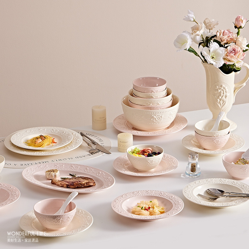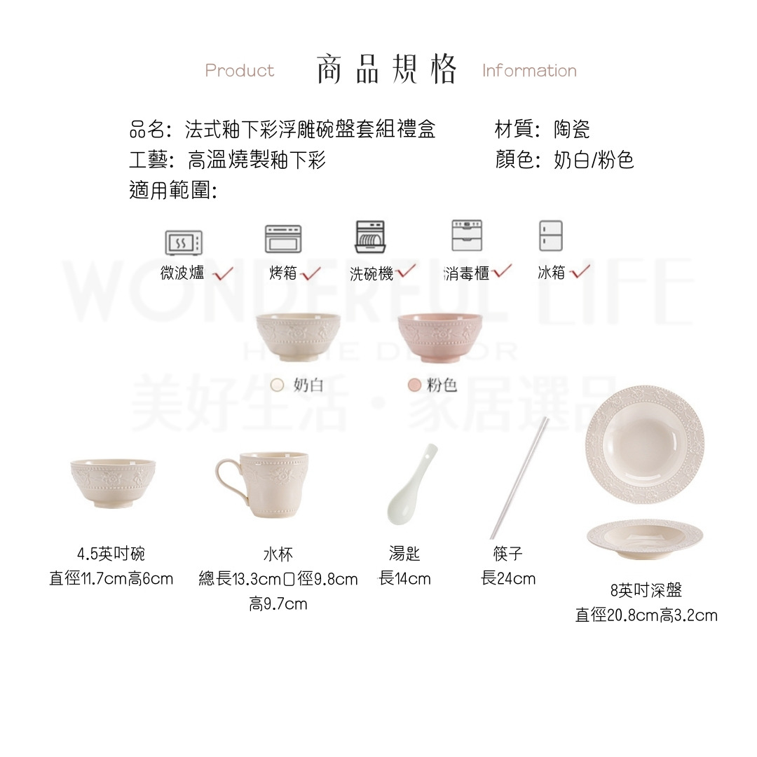 〖新品上架〗法式釉下彩浮雕碗盤套組禮盒 新年禮盒 新年禮物 陶瓷碗 陶瓷盤 過年禮盒 生日禮物 長輩禮物 節日禮物