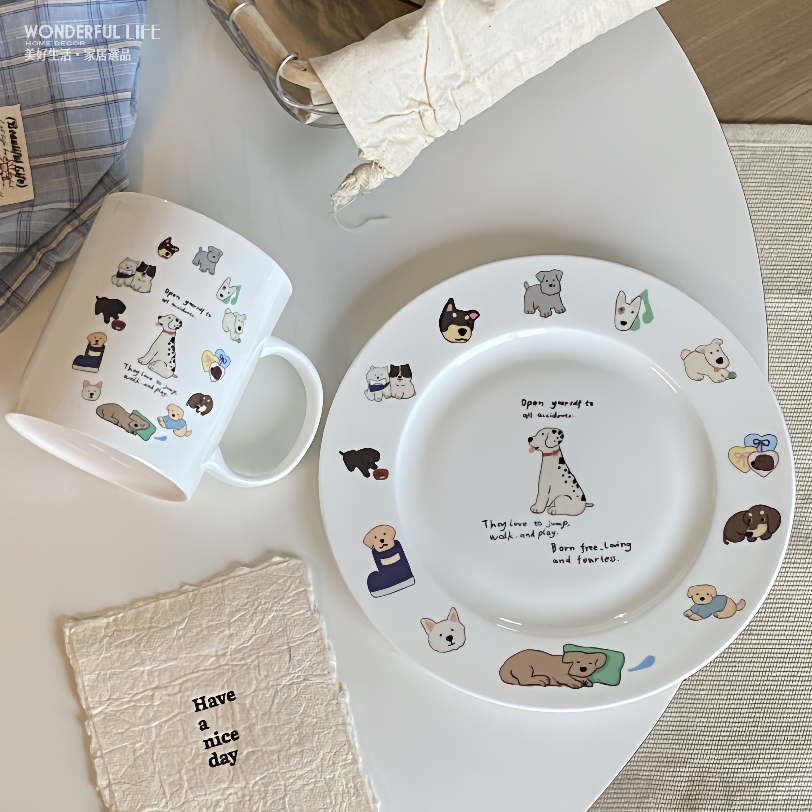 〖新品上架〗INS風狗狗集合骨瓷杯碟組 陶瓷水杯 杯子 早餐杯 咖啡杯 辦公室馬克杯 節日禮物 交換禮物 聖誕禮物