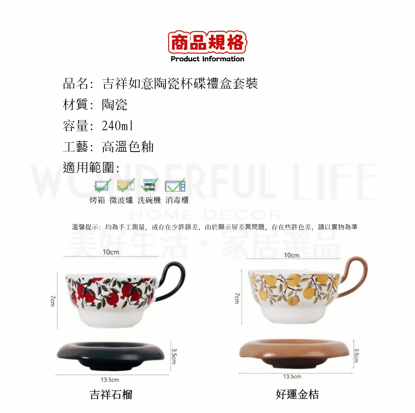 〖現貨 ❙ 新品上架〗吉祥如意陶瓷杯碟禮盒套裝 新年禮盒 新年禮物 過年禮盒 生日禮物 長輩禮物 禮物 咖啡杯碟