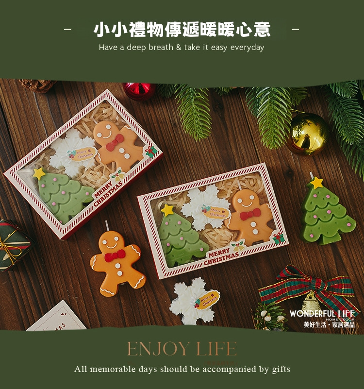 香型:聖誕樹-玫瑰/小雪花-英國梨小蒼蘭/薑餅人-咖啡牛奶